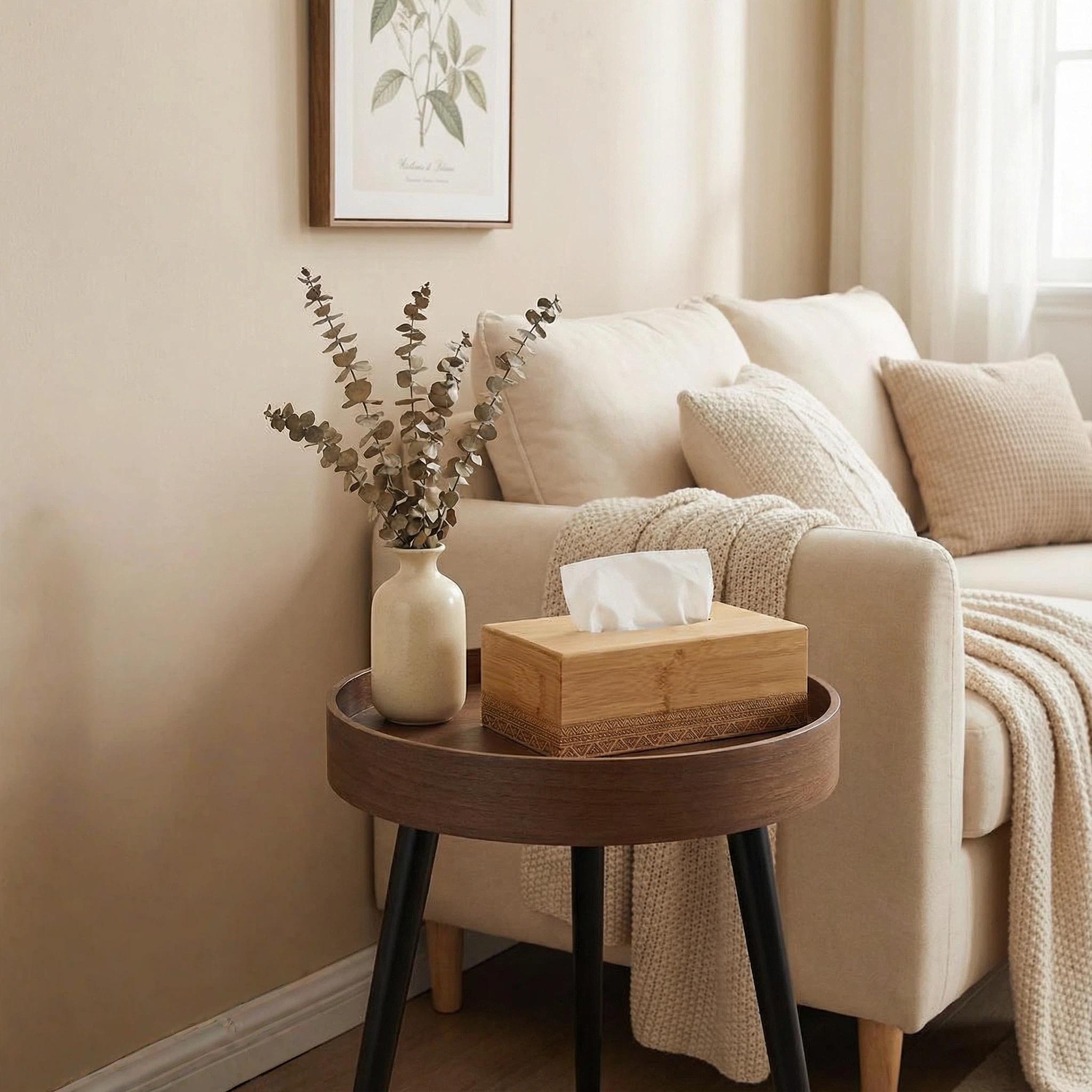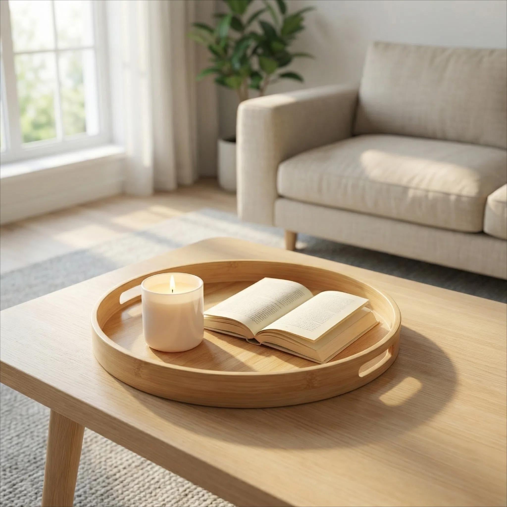 Hecho de bambú premium con textura clara y veta natural. Superficie carbonizada resistente al agua y manchas, fácil de limpiar. A diferencia de los posavasos de plástico, el bambú aporta calidez y elegancia, combinando perfectamente con estilos (nórdico), japandi o moderno. Los usuarios comentan: "Se siente como tocar un suelo de bambú de alta gama!"