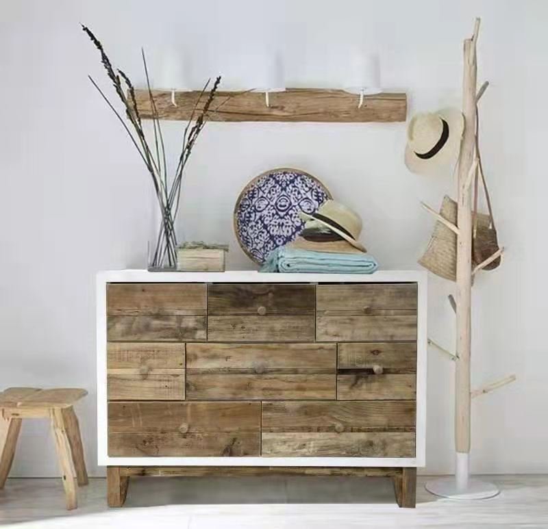 - Color: Textura de bambú claro + patrones geométricos oscuros